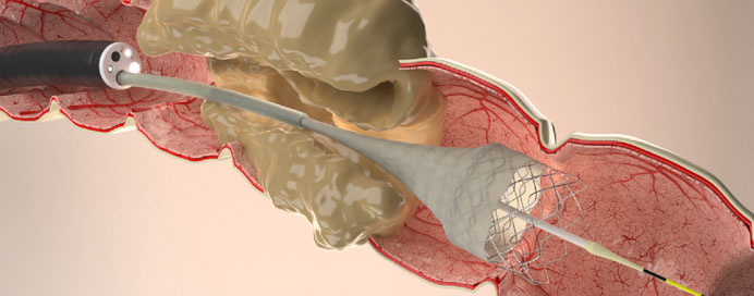 Colonic stenting is a medical procedure used to relieve obstructions in the colon, often caused by colorectal cancer, strictures, or benign conditions such as diverticulitis. This minimally invasive technique involves the placement of a self-expanding metal stent to open up the blocked section of the colon, allowing for the normal passage of intestinal contents. The procedure is typically performed endoscopically, with the stent being introduced through a colonoscope. Colonic stenting can be an emergency intervention to relieve acute obstruction, providing an alternative to immediate surgery, or as a palliative measure to improve the quality of life in patients with inoperable tumors. It offers several advantages, including reduced surgical risks, shorter hospital stays, and faster recovery times. However, like any medical procedure, colonic stenting carries potential risks such as perforation, stent migration, and re-obstruction. Follow-up care is essential to monitor the stent's position and function, and to manage any complications that may arise. Colonic stenting plays a crucial role in the management of colonic obstructions, offering a safe and effective solution for both temporary and long-term relief.